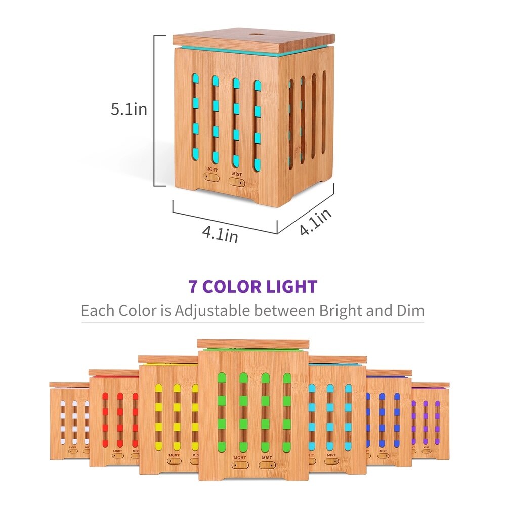 200ml Cubic Ultrasonic Bamboo Humidifier Nebulizer with 7 Color LED Lights