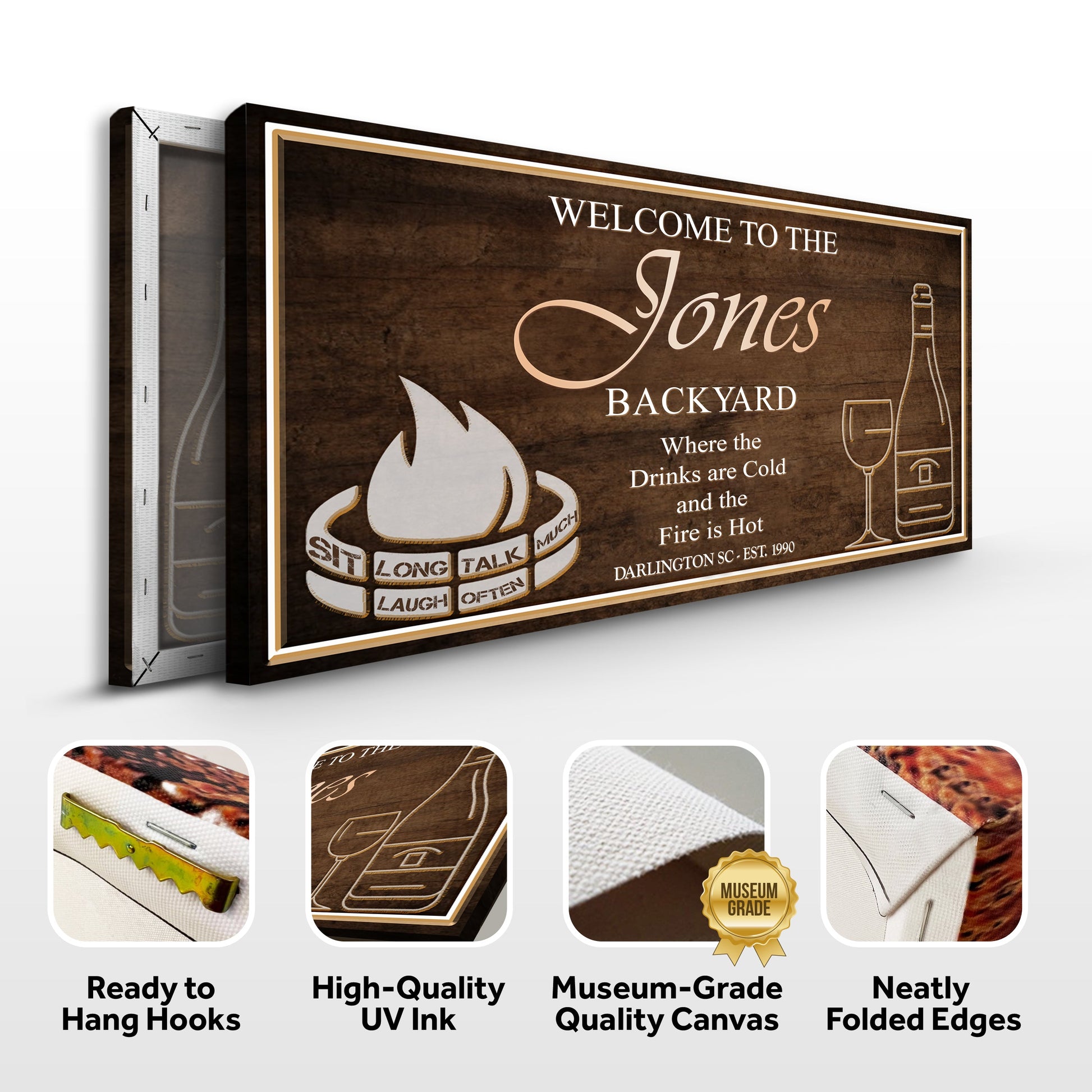 This beautiful backyard sign is made of high-quality canvas and features a stunning rustic design. It's the perfect way to add a touch of charm and character to your favorite outdoor space.