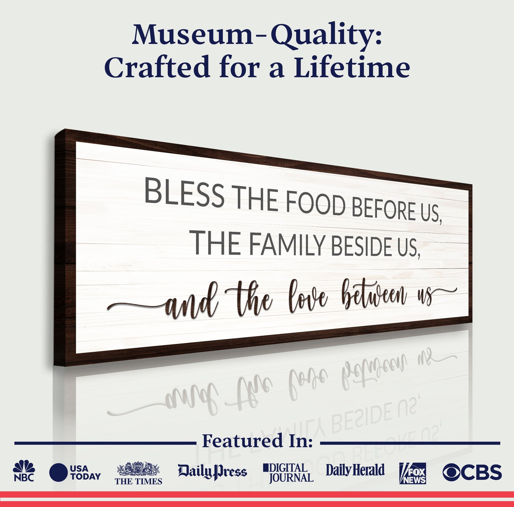 You deserve more than just an ordinary piece of off-the-shelf art. Get a premium home decor piece made just for you when you order a Bless The Food Before Us And The Love Between Us wall decor from Tailored Canvases. We create exclusively tailored prints on the best quality canvas for you — straight to your door. Click the ‘ADD TO CART’ button, and our talented artists will start working on your order!