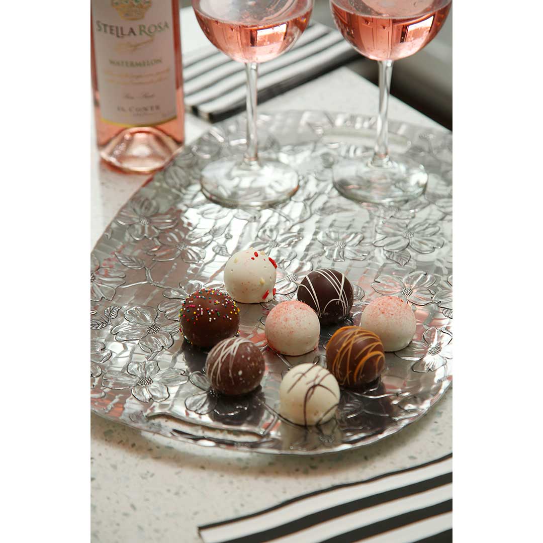 The legend holds that the Dogwood tree was once very large and its strong and sturdy wood was used to build the cross on which Jesus was crucified. Because of its role in the crucifixion, it is said that God both cursed and blessed the tree. It was cursed to forever be small, so that it would never grow large enough again for its wood to be used as a cross for a crucifixion. At the same time, however, the tree was blessed so that it would produce beautiful flowers each spring, just in time for Easter. The most unique part of the legend is that the petals of the dogwood actually form the shape of a cross. Upon close examination, it can be seen that the blooms of the tree always have four petals. And the tips of each of the petals are indented, as if they bear a nail print. There are even colors in the petals that bring to mind the drops of blood that spilled during the crucifixion. This large tray makes a remarkable statement at any event. It makes an equal impact when used as room decor.