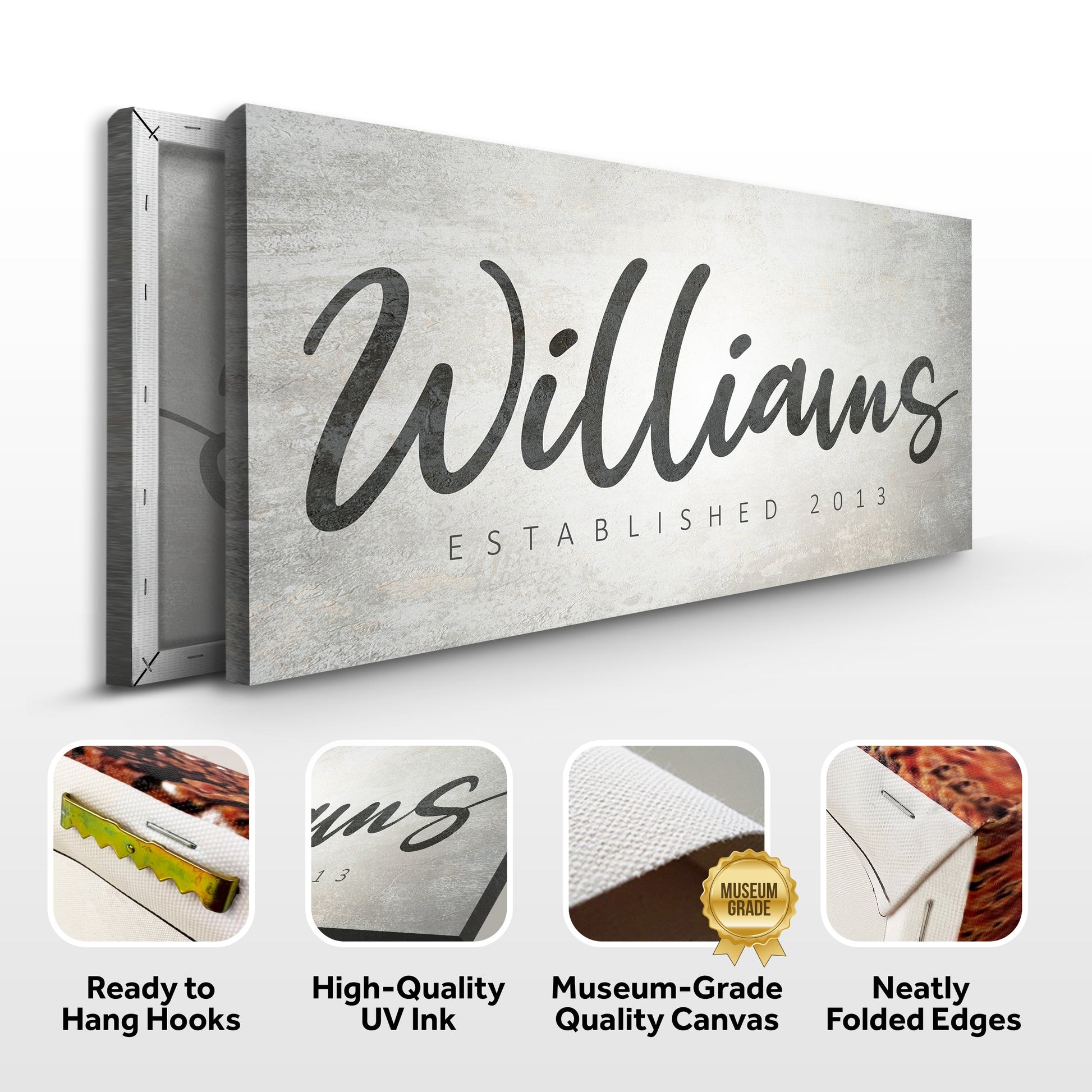 Many styles of family name signs are available, from traditional family name wall art to modern family name canvas prints. No matter what your style, a family name sign is a great way to show off your family name with love and pride.