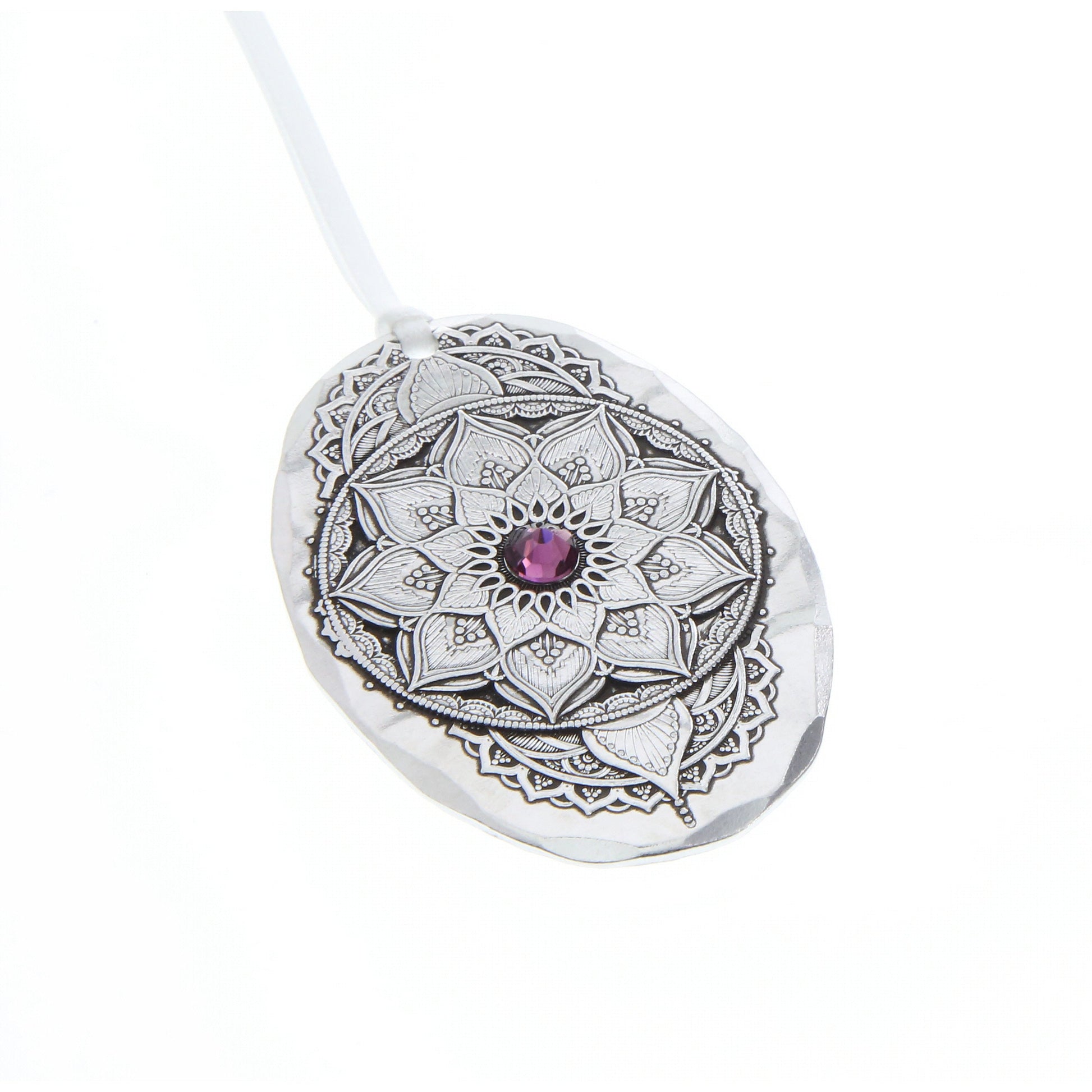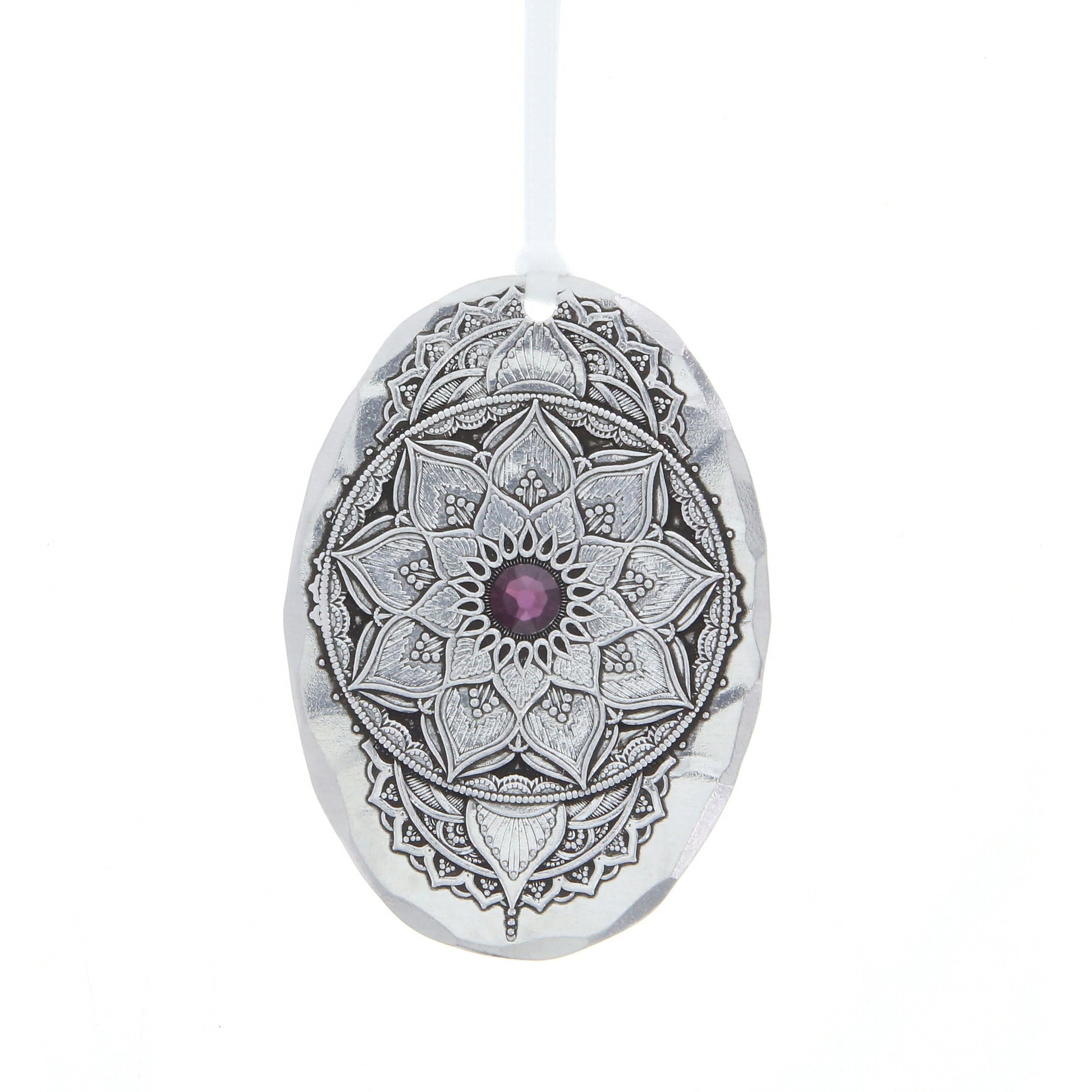 Inspired by ancient designs, the mandala birthstone ornaments are intricately designed and each adorned with a stunning Austrian crystal. The handcrafted ornaments symbolize the beautiful journey of life. The February birthstone ornament is accompanied by an insert card with the symbols of February...sincerity and peace. Personalize the back with a special message for a gift that will be cherished.