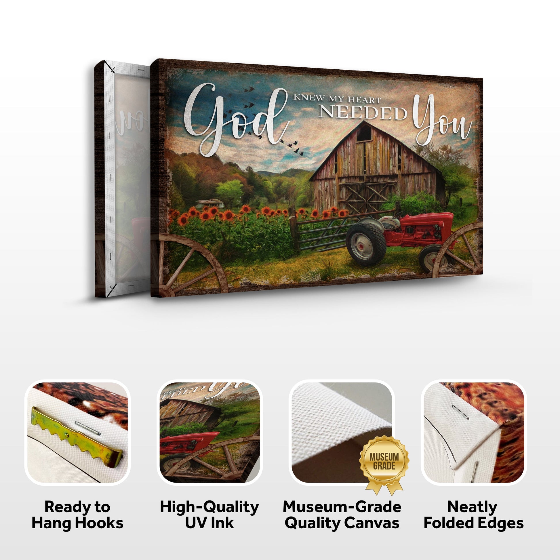 You may remind your significant other every day that she is the one you need and want in this life with this God Knew My Heart Needed You canvas wall artwork. It is the perfect complement to any home since it will create a warm, inviting atmosphere wherever it is placed.
