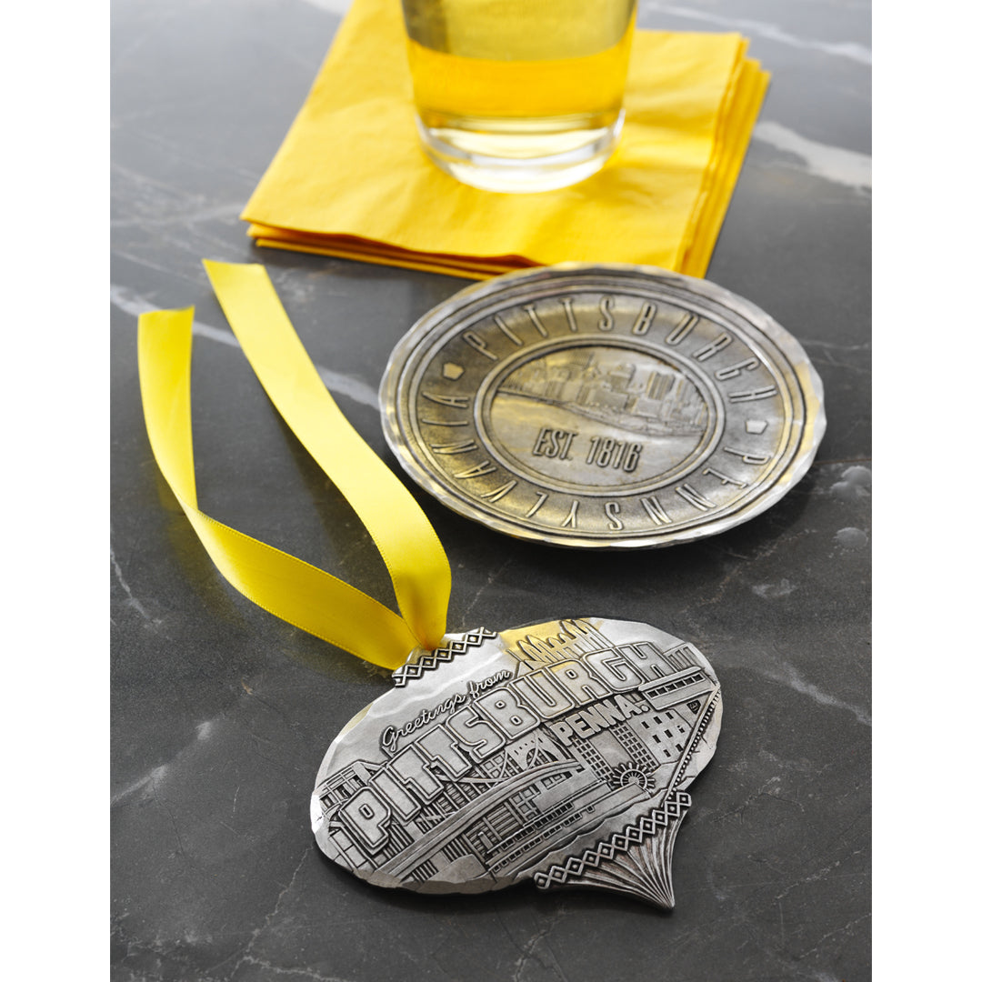 The handcrafted Greetings from Pittsburgh Christmas Ornament is the perfect tribute to one of the most beautiful skylines in the world. Inspired by a vintage postcard, each is meticulously crafted to capture iconic landmarks of the Steel City, including the towering PPG Place, the Roberto Clemente Bridge, the Gateway Clipper and of course, the Duquesne Incline! With its perfect blend of craftsmanship and holiday spirit, this ornament is the perfect gift for any Pittsburgher, or anyone who has visited and fallen for its charm and character.