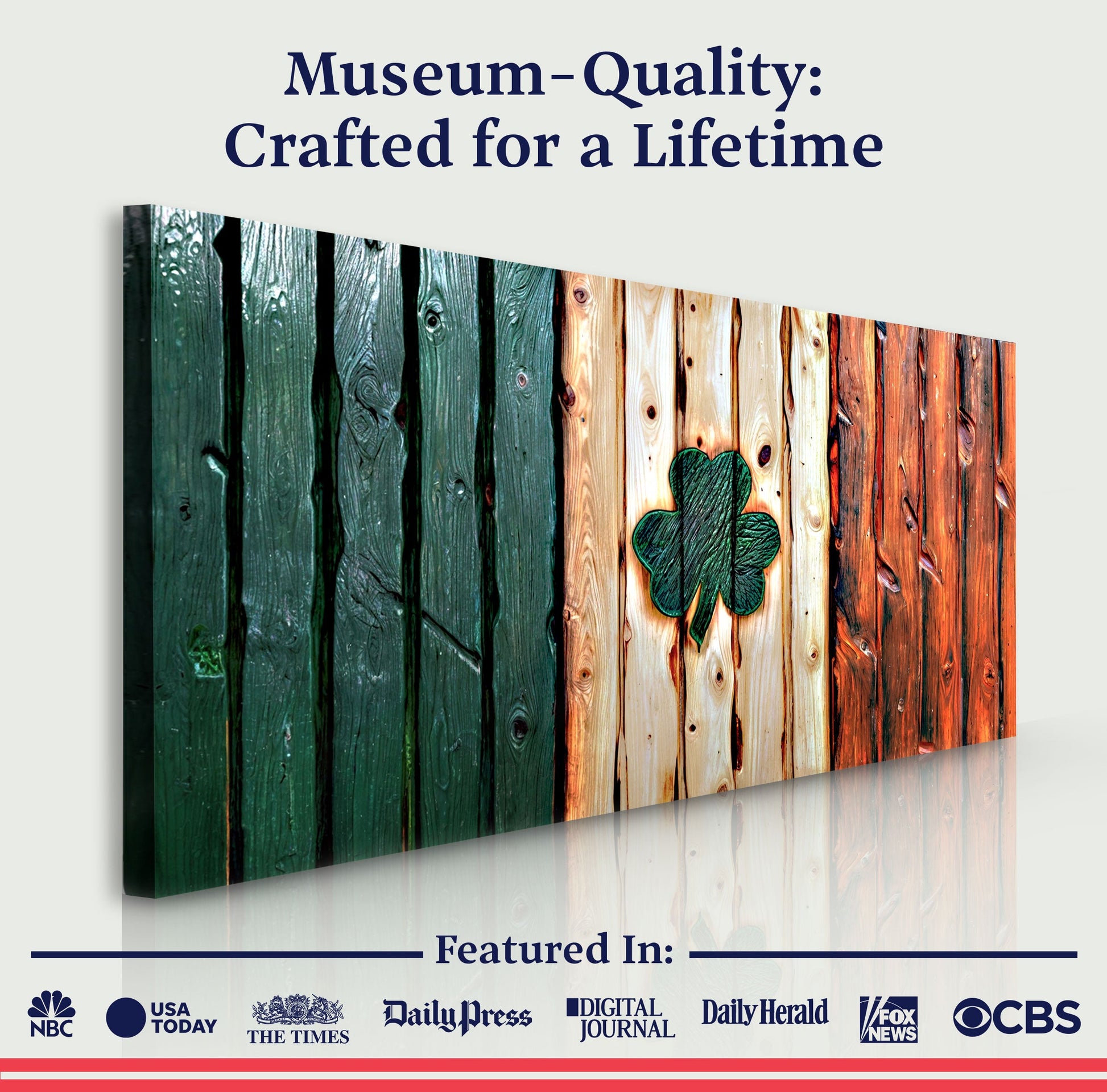 Celebrate Irish pride and tradition with this stunning canvas wall art, featuring the Irish flag colors in a rustic wooden design, beautifully accented by a classic shamrock symbol in the center. This piece exudes a warm, vintage charm, making it a perfect addition to any home, pub, or space that embraces Irish culture.