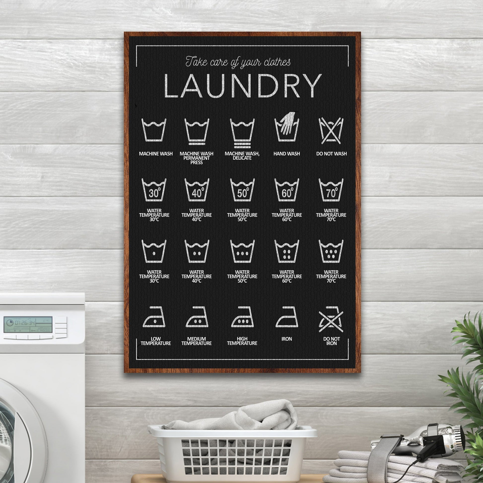 Your laundry room will receive a creative boost with this Laundry Symbols canvas wall art. vintage, understated, and strong. With its timeless feelings, this Laundry Symbols wall art will last a lifetime. Bring some creativity into your life and add some style to your laundry room.