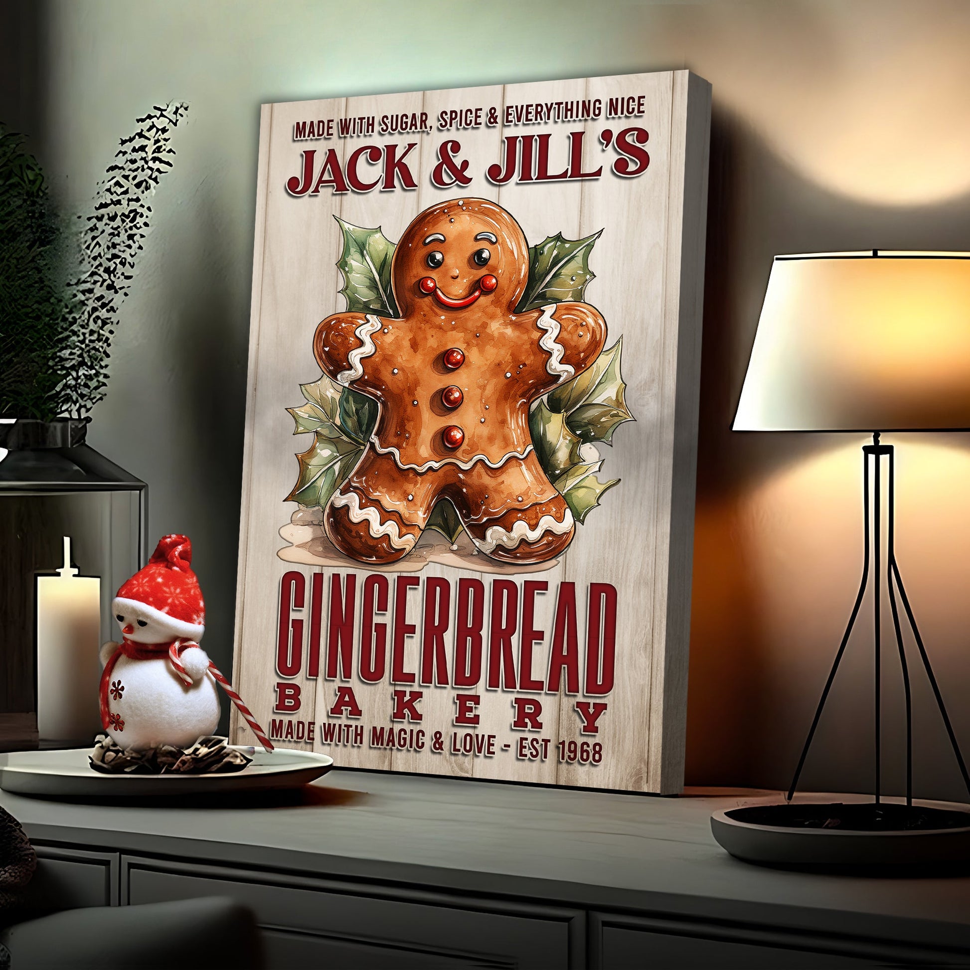 Adorn your home with the warm, delightful, and enchanting spirit of the holidays by bringing home the Made With Magic & Love Gingerbread Bakery Sign. This exquisite piece isn't just a mere wall decor; it's a testament to the age-old traditions of gingerbread making and the warmth of a festive kitchen.