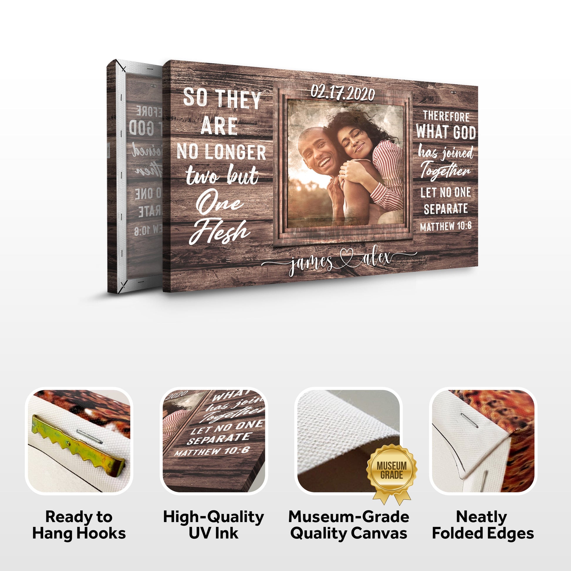 Your wedding day is a special occasion to celebrate the love between you and your spouse. What better way to showcase that love than with this Matthew 19:6 What God Has Joined Together Let No One Separate canvas wall art? This Matthew 19:6 What God Has Joined Together Let No One Separate sign is a beautiful reminder of the vows you made on your wedding day, and it is a symbol of the everlasting love between you and your spouse. Hang this Matthew 19:6 What God Has Joined Together Let No One Separate canvas print in your home as a reminder of your love for each other, and let it serve as a reminder of the promises you made on your wedding day. "What God has joined together, let no one separate." Matthew 19:6.