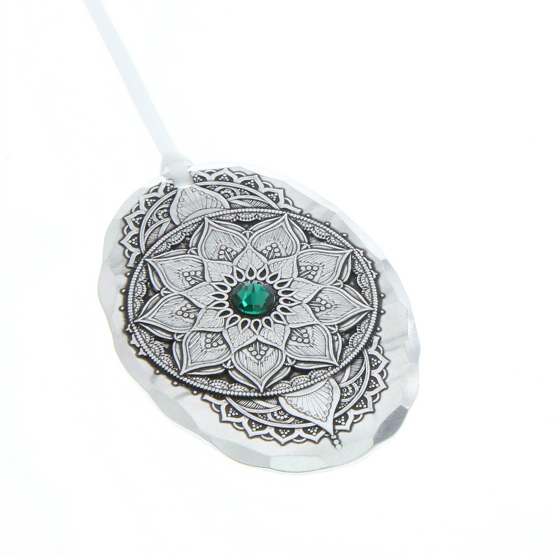 Inspired by ancient designs, the mandala birthstone ornaments are intricately designed and each adorned with a stunning Austrian crystal. The handcrafted ornaments symbolize the beautiful journey of life. The May birthstone ornament is accompanied by an insert card with the symbols of May...happiness and fertility. Personalize the back with a special message for a gift that will be cherished.