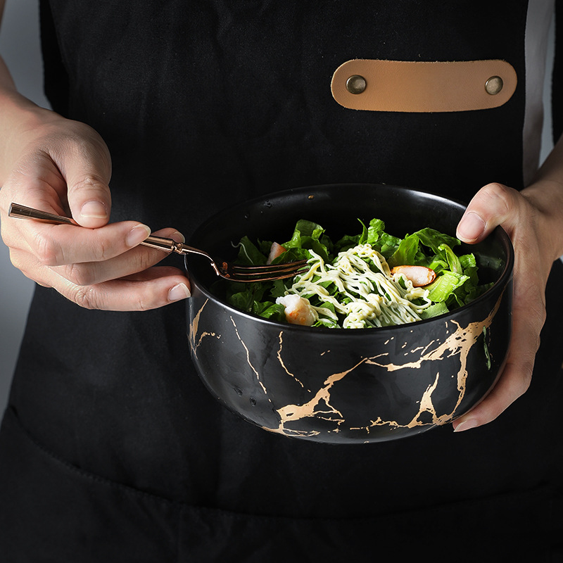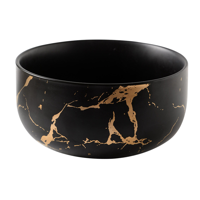Choose the Nordic Wind Frosted Ceramic Marble Gold Thread bowl to add a chic touch to your dining experience and impress your guests!
