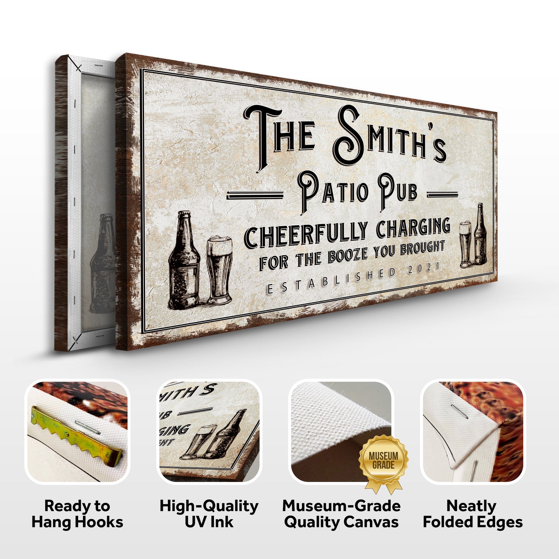 Looking for a way to add some personality to your patio relaxation space? Look no further than our Patio Pub Cheerfully Charging For The Booze You Brought Sign canvas wall art! This sign is the perfect way to personalize your space and make it your own. This sign will turn heads and get people talking with its rustic-inspired design.