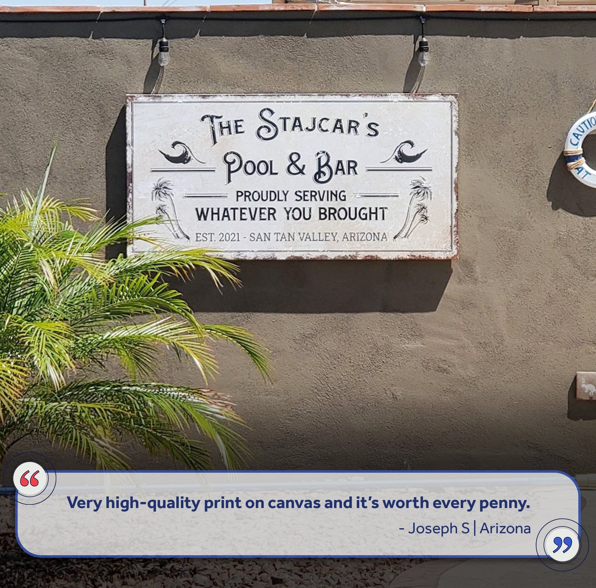 Plus, all of the Pool And Bar wall art is made from high-quality materials and comes with a 100% satisfaction guarantee, so you can be sure you're making a wise investment. So go ahead and customize your Pool And Bar sign today - your pool will thank you for it!
