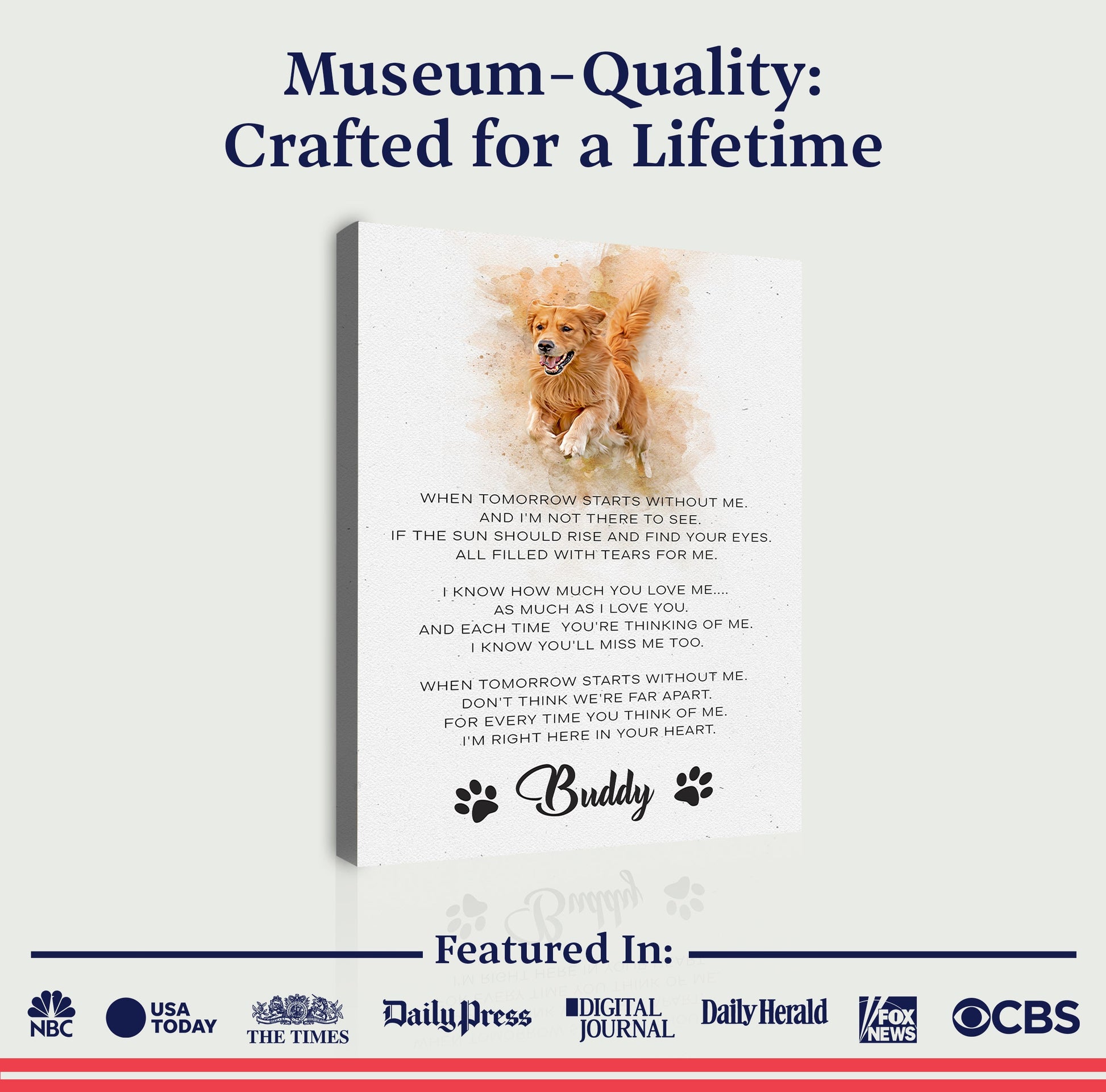 Let the memory of your beloved family member live on with this custom dog memorial pet loss frame portrait. Take comfort in the elegant wood patterns that will complement any photo canvas for any home décor style. Hang this passing gift in your pet's favorite room as a fitting tribute to the happy memories that you once shared.