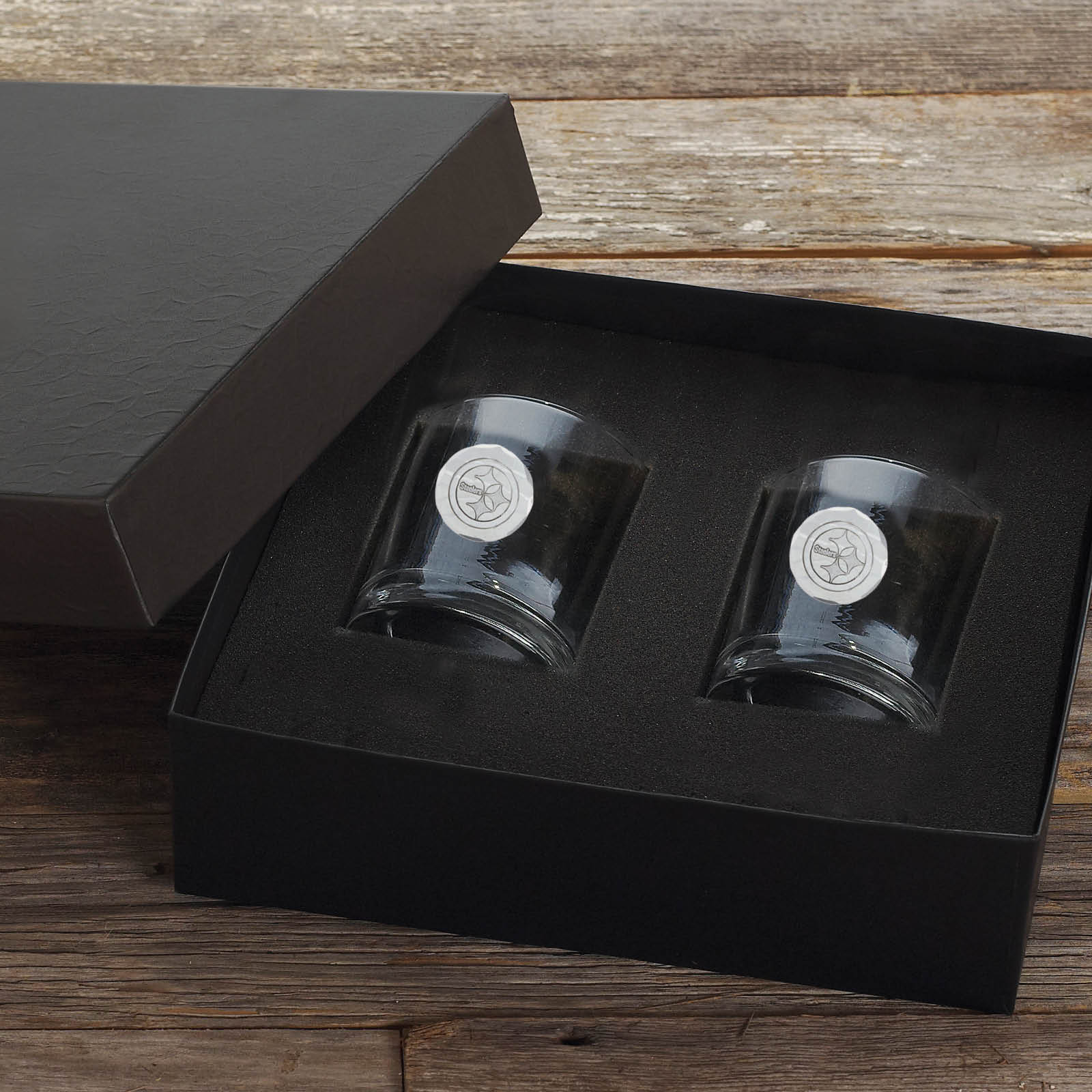 Cheers! Celebrate the City of Champions with this beautiful Pittsburgh Steelers Stemless Wine Glass Set. Ready for game day entertaining, show your Steelers pride with this unique symbol of two American traditions that bind us together as family and friends - NFL football and great hospitality. A championship gift for any Steelers fan!