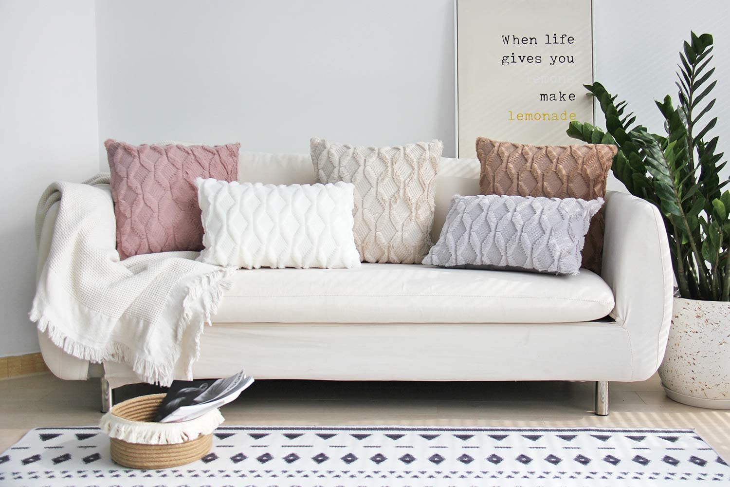 Rectangular Lumbar Plush Throw Pillow Covers, Pack of 2 Luxury Soft Pillowcases, Solid Colors, (With/Without Inserts) 12x20 inch