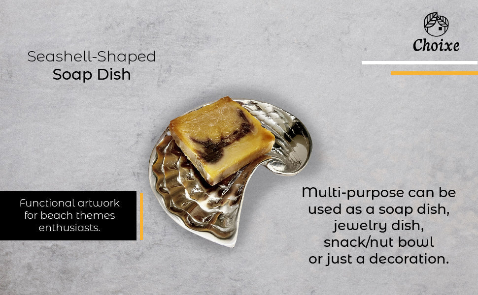 MULTI-PURPOSE AND FUNCTIONAL. An astonishing seashell-shaped bath accessory to serve as a soap dish or jewelry dish, kitchenware or enjoy for its luminous beauty as a decoration accessory.