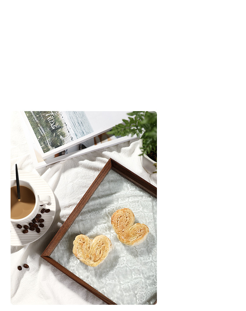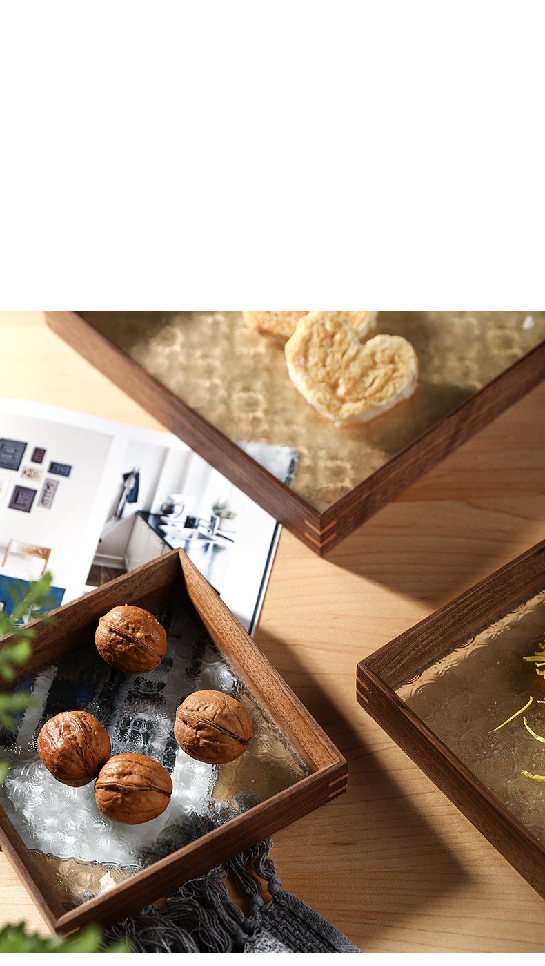 Available in a variety of configurations, you can choose from large and small sizes as well as different wood finishes, including deep black walnut and warm beech. The large tray measures 245x245x35mm, while the rectangular version is perfect for displaying fruits or jewelry at 320x160x35mm.