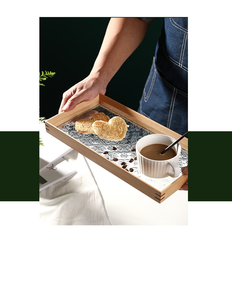 Elevate your home decor with our Solid Wood Retro Embossed Begonia Glass Tea Tray. This exquisite piece serves not only as a functional item but also as a stunning decorative accent for your living space. Crafted from high-quality wood, it features a unique retro style that effortlessly blends vintage charm with modern elegance.