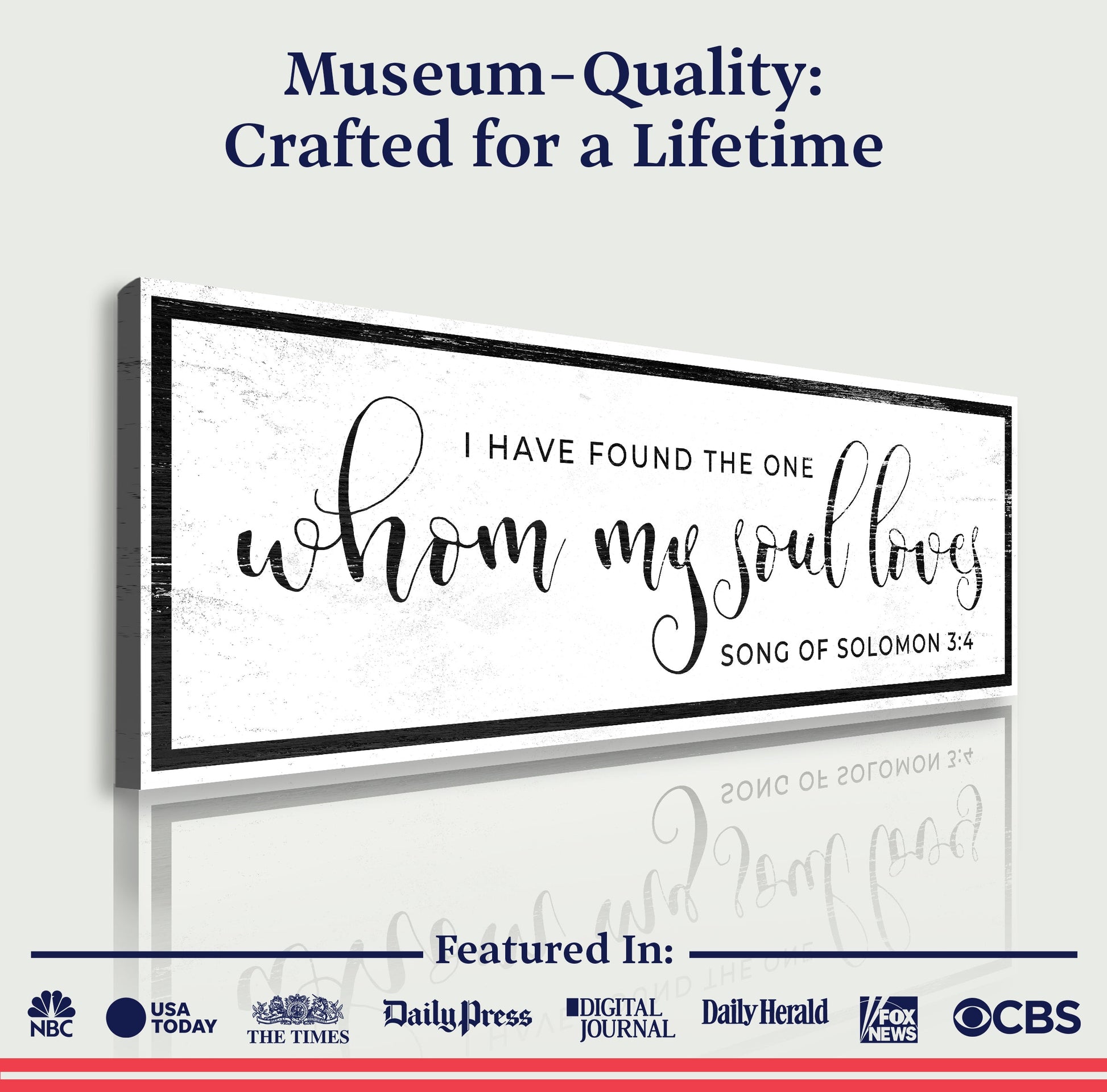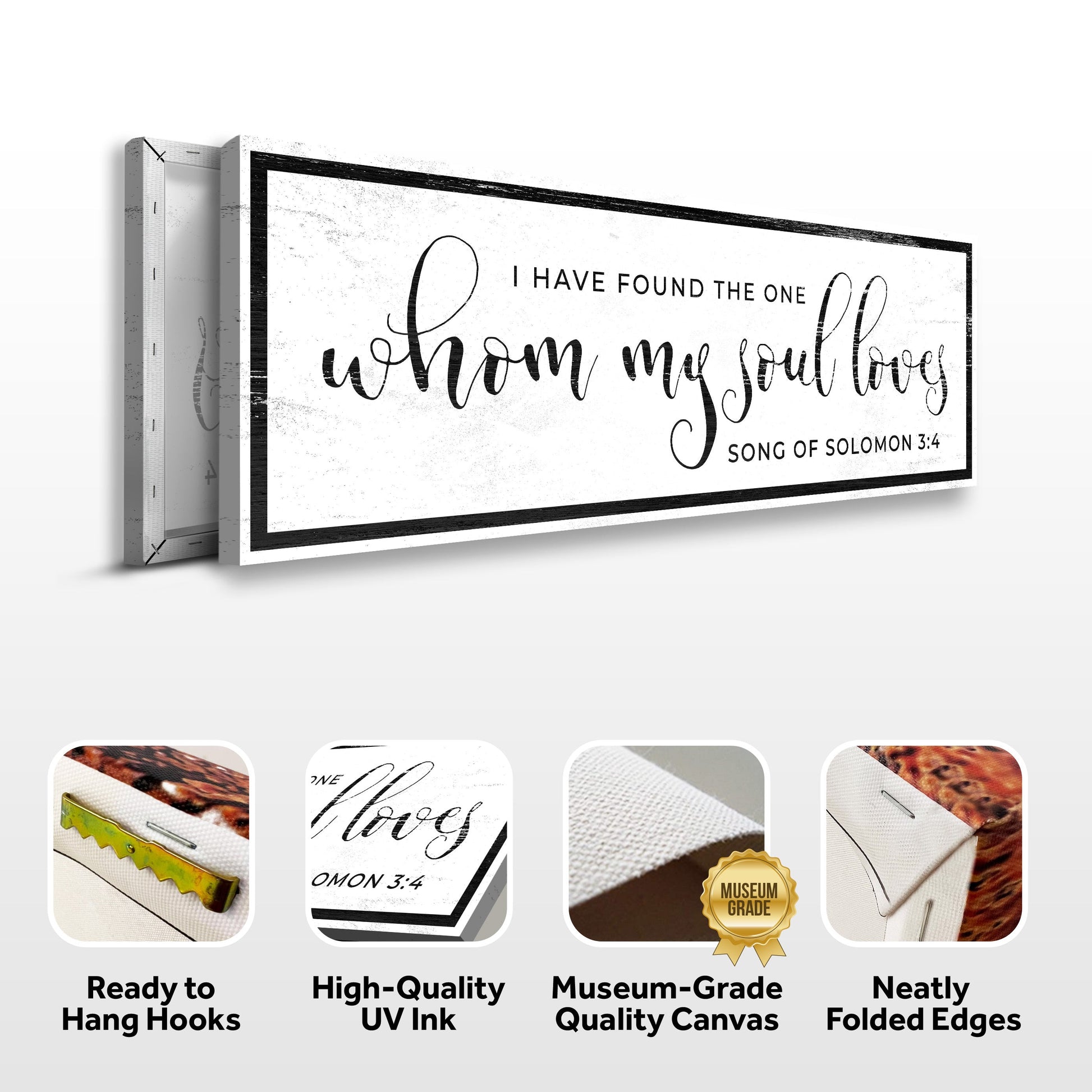 The Song of Solomon 3:4 - I Have Found the One wall art is made of a thick premium canvas, and UV-resistant ink is used to print the graphics. The Song of Solomon 3:4 - I Have Found the One canvas wall art is perfect for giving your house or room a poetic ambiance.