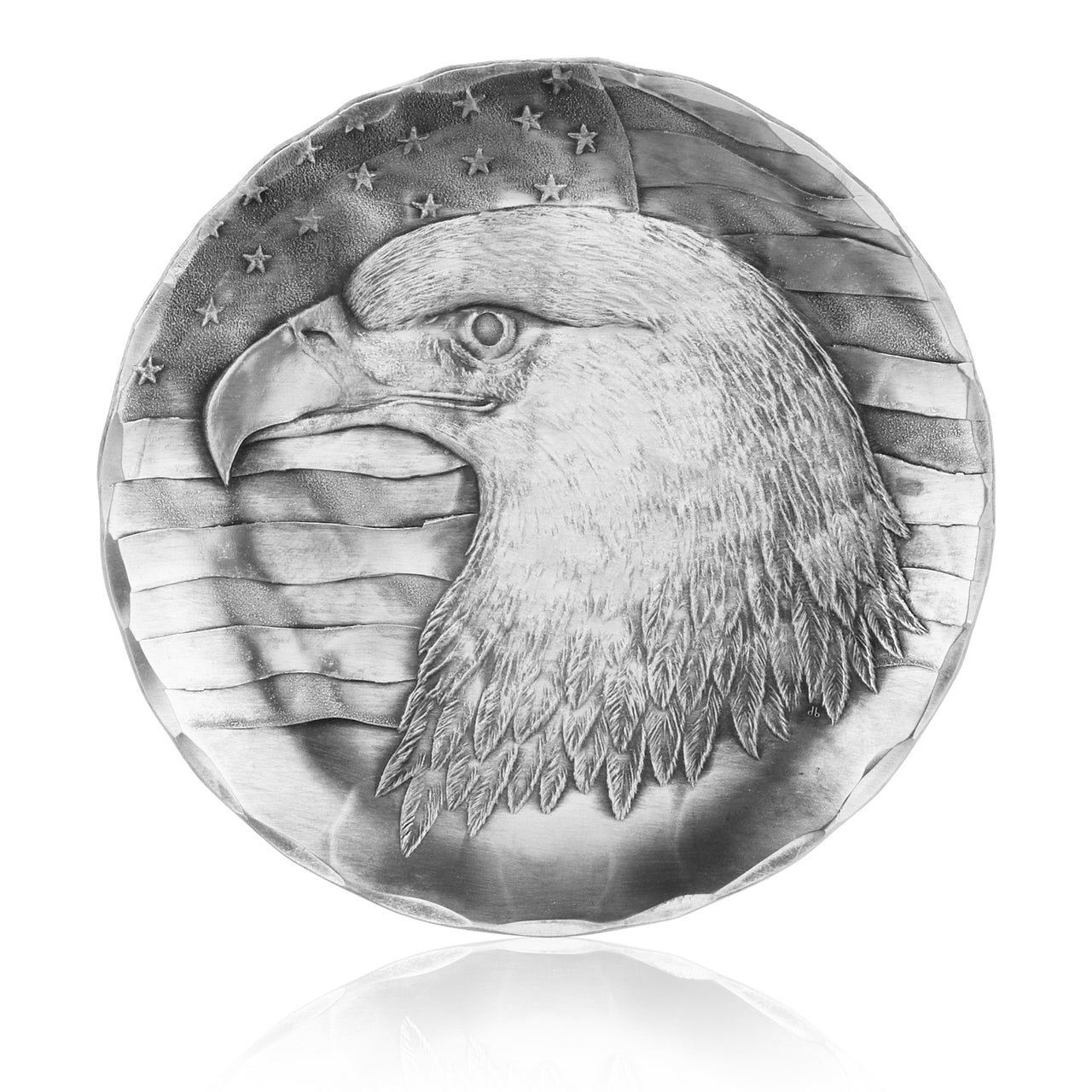 Strength. Grace. Freedom. All words that come to mind when one sees a Bald Eagle...and the American flag. The American???ÿpeople, whether in times of prosperity or in times of struggle, rally around these 2 icons of the American Spirit. The artisans and craftsmen of Wendell August Forge proudly add their distinctive interpretation of the Spirit of America in these inspiring mini-plates.